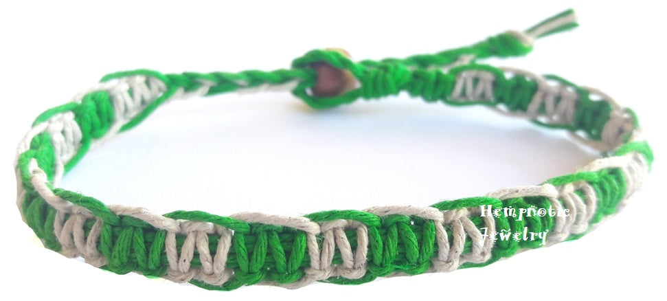Natural and Green Surfer Hawaiian Adjustable Hemp Bracelet or Hemp Anklet